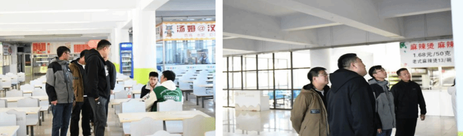 2025年的10月26日,道桥工程学院26届毕业生陆续返校。为切实保障师生在校生活质量,筑牢校园安全与服务防线,学院全体领导班子成员带领毕业生辅导员深入学苑校区,了解学生住宿情况和食物安全,实地走访学生寝室和食堂,以“实地查看和现场交流”的形式,开展全方位、深层次的实地检查与走访工作,把关怀与服务落到校园生活的每一处角落。