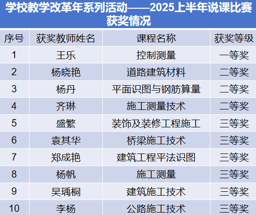 2025年7月9日,我校教学改革年系列活动——2025年上半年说课比赛在知行楼教师之家顺利举行,本次比赛由教务处主办,道桥工程学院的老师们积极参加,有效推动了课程教学改革与教师教学创新能力提升。