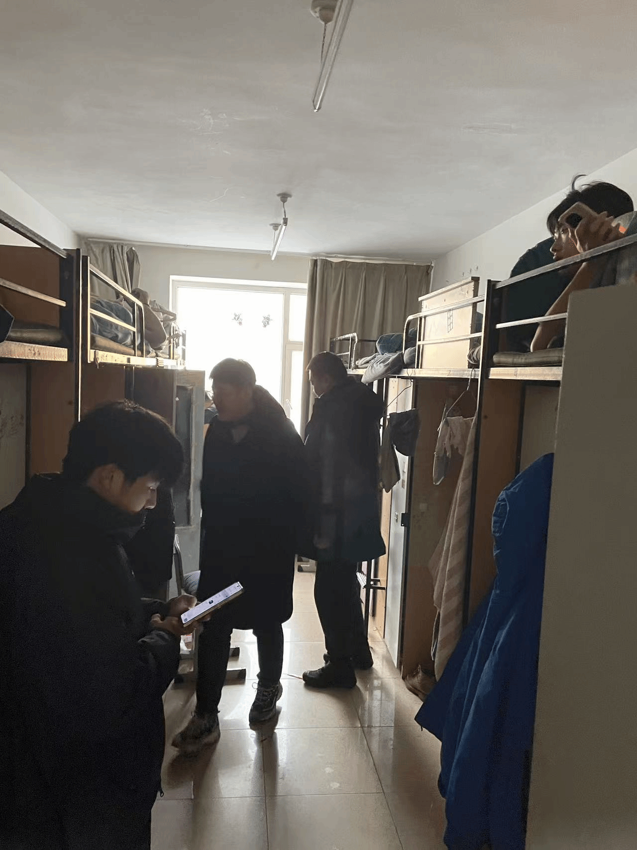 检查组深入学生寝室,重点围绕环境卫生、用电安全、消防安全、财物安全等方面进行了全面细致的排查。各位辅导员老师仔细检查了寝室卫生状况、物品摆放秩序,并重点查看了插座使用、电器设备、是否有违规使用大功率电器或私拉乱接电线等情况。并强调:“安全无小事,尤其是在假期临近、人员流动增大的时候,同学们更要时刻绷紧安全这根弦,离校前务必确保断电、关窗、锁门。”