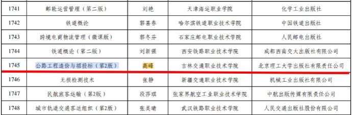 近日,教育部正式公示第二批“十四五”职业教育国家规划教材遴选结果,我校道桥工程学院高峰教授团队编著的《公路工程造价与招投标(第2版)》教材成功入选,标志着我校对接交通建设产业需求、深耕职业教育教材建设与教学改革的成果获得国家级权威认可,迈上全新台阶。
