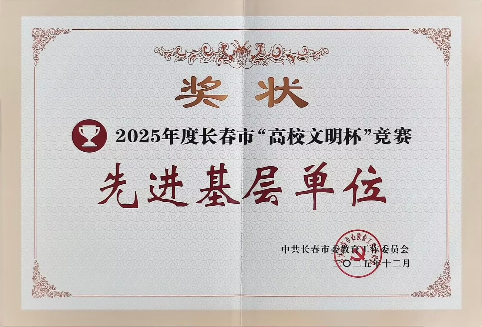 近日,中共长春市委教育工作委员会公布了2025年度长春市“高校文明杯”竞赛活动评选结果。我院荣获多项集体与个人荣誉。其中,道桥工程学院党总支获评“先进基层单位”,路桥23303班获评“文明班级”,石春辉老师荣获“学生管理工作先进个人”称号,路桥23304班谢锦阳、路桥23311班孙继遥两位同学获评“优秀大学生”。