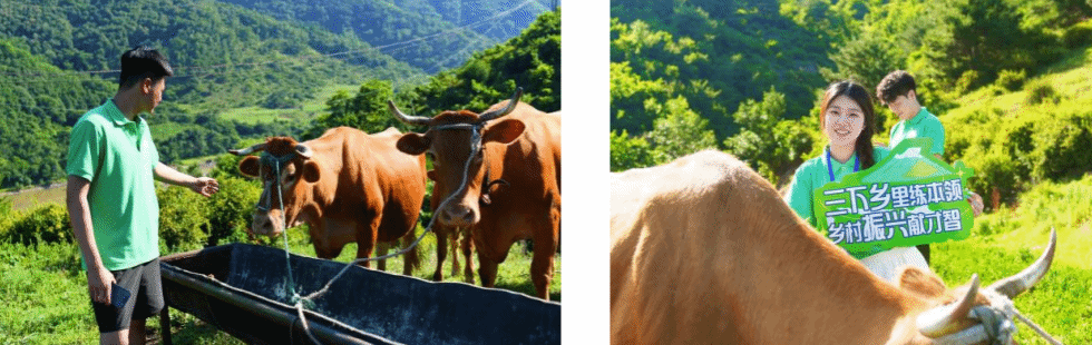 午后的阳光洒在苇子村黄牛养殖基地,团队成员循着草料的清香深入天然棚舍,从育种到出栏、从疫病防控到市场流通,细致研学每个环节。参观结束后,大家深刻意识到:乡村振兴既要路通桥稳的基建支撑,更需农业产业插上现代化、科学化的翅膀。