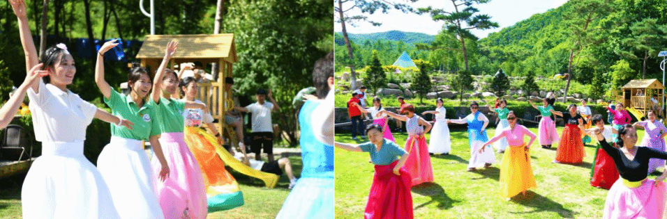 当日下午,实践团走进康宁民俗园,通过与村民交流,大家深入了解民俗园的历史背景与文化内涵,真切感受乡村文化的深厚底蕴与独特魅力。在草地中央,实践团与村民共跳民族舞,裙摆飞扬间,是文化的交融,更是心灵的相拥。排球场上的呐喊声掀翻了午后的宁静。师生与村民组队厮杀,精准的传球、奋力的扣杀里,藏着“并肩作战”的默契,欢声笑语中,心与心的距离愈发贴近。“就像石榴籽,紧紧抱在一起才更有力量!”村民阿姨的话,道出了此刻最真挚的情谊。