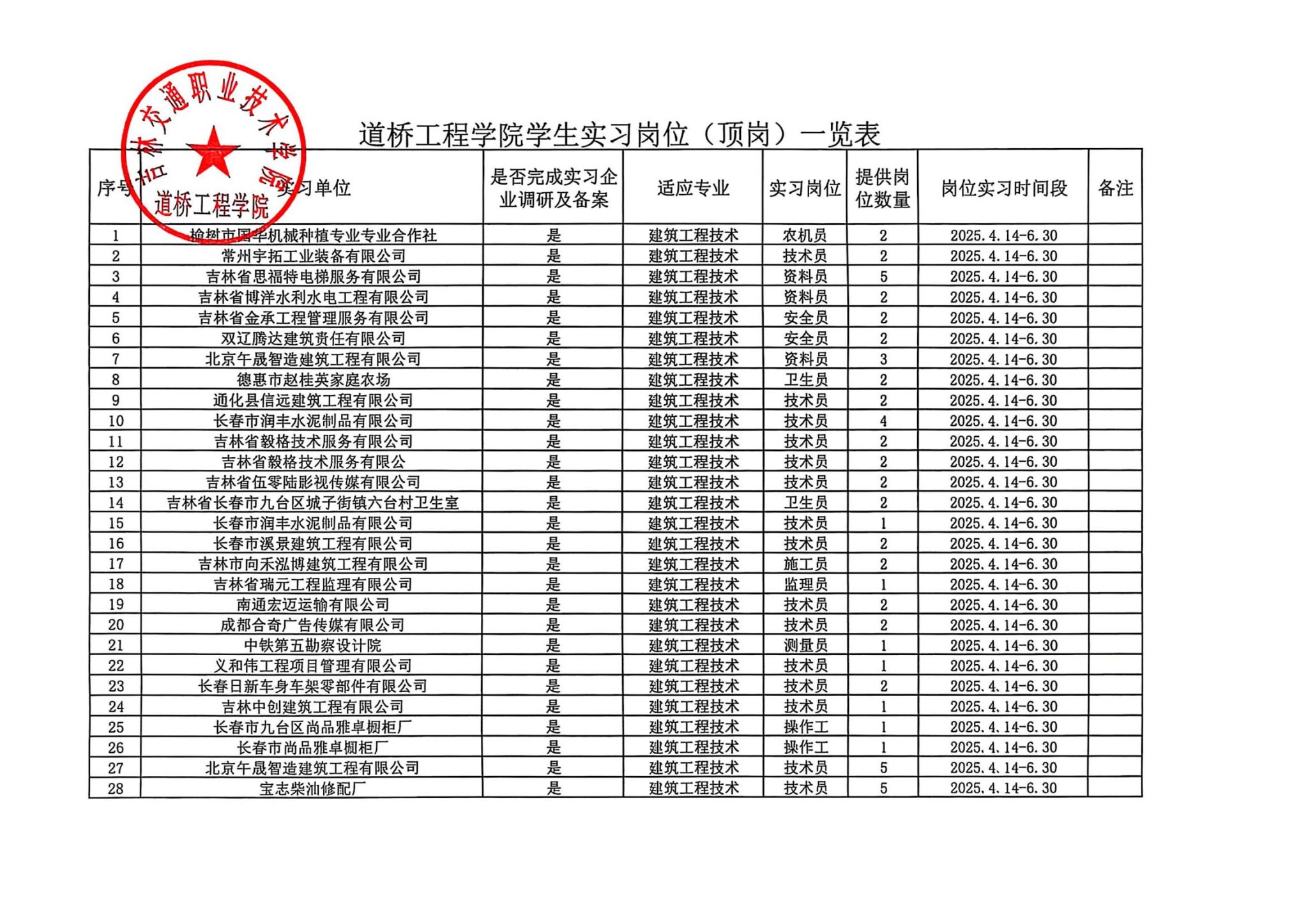 现将2024-2025-2学期道桥工程学院学生实习岗位(顶岗)情况进行公示。公示期为2024年3月31日至4月4日。