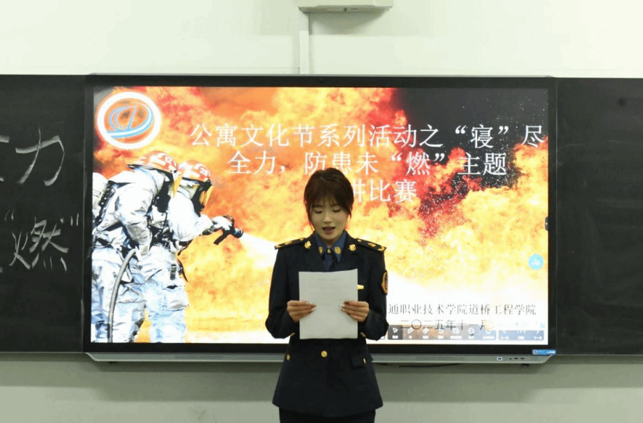 为切实强化学生宿舍安全防护意识,助力公寓安全文化建设,全力构筑平安和谐的住宿环境,11月9日晚,道桥工程学院公寓服务委员会精心策划并举办了以“寝尽全力,防范未燃”为主题的安全教育演讲比赛。全院各专业学子齐聚赛场,用语言传递安全力量,以热忱守护寝室“小家”平安。
