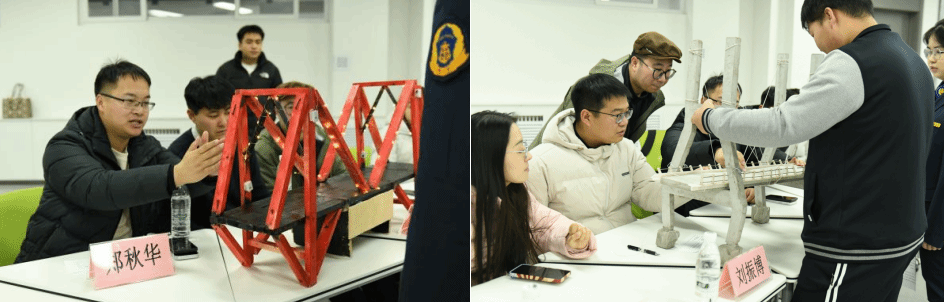 活动当天,道桥工程学院24级、25级参赛队伍齐聚赛场,凭借精巧设计、细致制作与严谨结构分析,展开了一场别开生面的创意比拼。选手们结合专业知识,条理清晰地阐述桥梁模型的设计理念、结构特点与创新亮点:有的采用创新材料组合,在减重与提升承载能力间实现精妙平衡;有的造型设计独具巧思,将美学表达与工程实用完美融合,充分展现了青年学子的专业积淀与创新潜力。