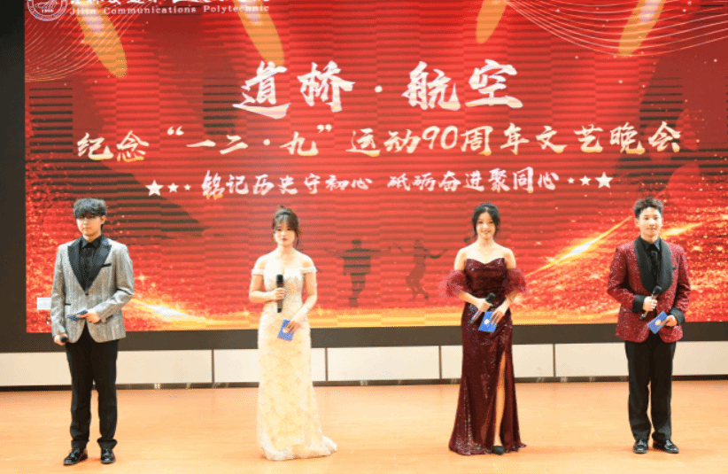 点击边框调出视频工具条 为纪念“一二·九”运动90周年,弘扬爱国主义精神,深化学院交流,2025年12月10日晚,“铭记历史守初心 砥砺奋进聚同心”主题文艺晚会于我校知行楼4401隆重举行。道桥工程学院党总支副书记石春辉老师、航空学院党总支副书记卢颖老师,以及两院专职辅导员共同出席了本次活动。晚会在活力四射的舞蹈《Batter up&Daddy》中拉开帷幕动感的节奏、利落的舞姿瞬间点燃现场彰显了青年学子的昂扬朝气《...[详情]